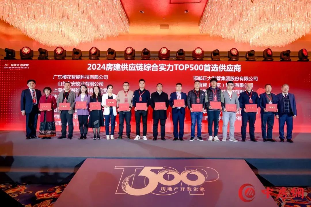 2024.03.21 行業唯一雙品類登榜品牌!櫻花智能鎖再次斬獲房地產TOP500首選供應商